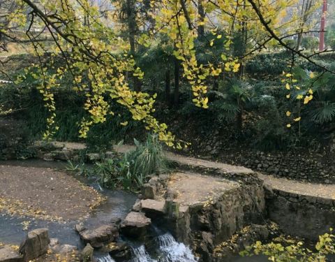 妥乐银杏村景区主要分为两部分。靠近入口的部分是现代化的会议配套部分,有湖,有小别墅,有廊桥。再往里面走,是古村落部分,有小桥流水、小瀑布、银杏树、村屋,还有好多鸭子、鸡、大鹅。 我是十月中旬去的,叶子刚开始黄,再晚一点去,效果会更好。