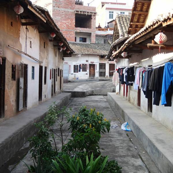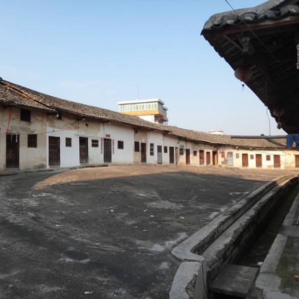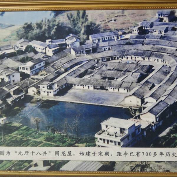 围龙屋属县二级旅游景点,是陆河县唯一保存基本完好的围龙屋。位于水唇镇墩子寨,陆五公路旁。建于乾隆十三年,至今已有340年的历史,大屋构建于一小龟山上,占地10余亩,呈椭圆形,中间高,四周低,周围是池塘,似龟游湖,房屋的格局似龟背纹;最令人津津乐道的有二奇。一为门坎,东西门的门坎都是天然生就。前为青条石,后为朱砂石,一样长,一样高,连水平高度也大致相当。天然生就的石条不用一锤一凿,便形成且被十分讲究风水的先民看中,恰好成了东西门坎;二是古井,古井位于屋外池塘边,它有四奇:一是出污泥而不染,古井周围是污泥塘,但二米见深的井水一尘不染清澈见底,污水不能入侵;二是逢大雨塘水溢过井面,此时井水汩汩而出,不让污水沾染;三是永不干涸,井水长期供全村千余人口饮用,长年不干涸;四是井水水面高于池塘水面,而水也不溢出。据考证,围龙屋是客家先民从中原迁至赣闽粤之后为抵御外敌而兴建的一种集实用性,科学性,艺术性于一体的的独特建筑,它完全按龟背纹来设计,结构完美,气势恢宏,堪称中华民族建筑史上的经典之作,博得各国建筑专家的喝彩,被誉为:“外星人的建筑”。