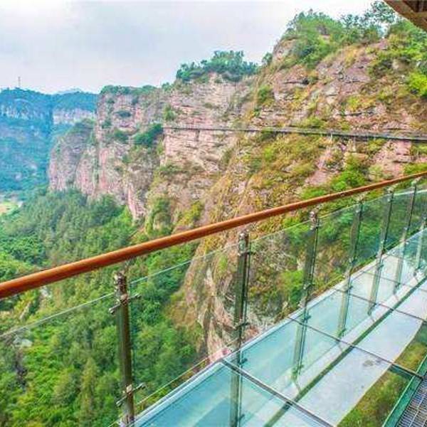 1.5米,透过玻璃...飞龙栈道位于新昌穿岩十九峰景区,主要有三部分组