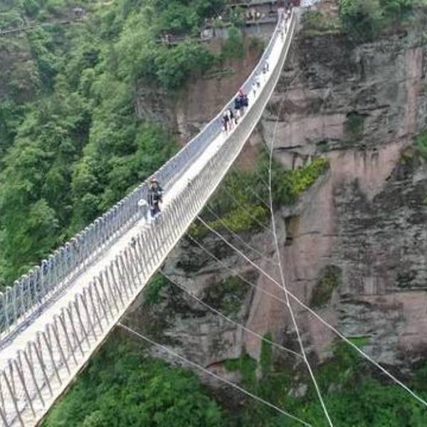 1.5米,透过玻璃就能看到脚下垂直的山体。飞龙天桥