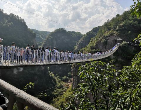 成:古木栈道、空中玻璃栈道和飞龙天桥。总长3200