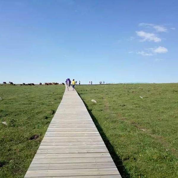 金骆驼 一路上的景色非常棒,可以缓解爬山的压力。为了保护生态,草原上有专门的栈道可以走。等了一个多小时雨停了去芦芽山,原本是冲着万年冰洞去的,可是到了听去过的人说,冰冻现如今已经全靠制冷机维持了,想来也已经没什么意思,于是,专注的逛芦芽山就好了。