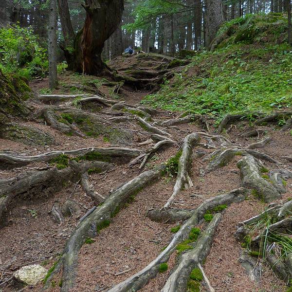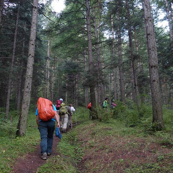 爬山的一路上没有水和食物的补给,而且这里的爬升强度很大,不经常爬山的人来这里一定给自己备好水、食物、补充热量的零食、登山杖、登山鞋。一路上的景色非常棒,可以缓解爬山的压力。这里的冷杉林子形成了有好长的时间了,树根都已经被雨水冲刷的露到了外面,树根的地方长满苔藓,形成一幅高山流水的静态画面,背山处风比较大,松涛的声音也非常棒。