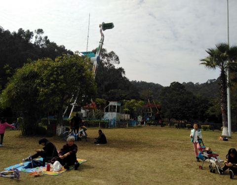 公园很大黄旗山和虎英两个景区连成一体,是市民休闲的好去处,公园内绿树成荫,虎英湖上游船在荡漾,今天天气很好又是礼拜天,很多家长带着小孩在铺上垫子和帐篷在公园草地上嘻戏玩耍,游乐场内还有海盗船、航天...