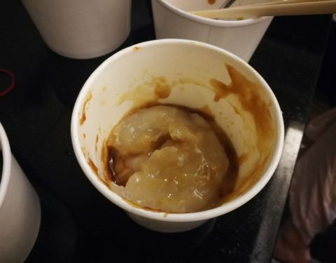 宝岛跟大陆真的文化一脉相承,一些小吃必须给有深厚的历史渊源,比如是跟哪个达官贵人相关,或者是有什么咸鱼翻身的故事。这家也不例外,但如雷贯耳的肉圆在前,哪有心情去详细了解什么历史,还是先解馋要紧。 因为门口不方便停车,所以我们直接买了打包带走。回酒店吃也就隔了五分钟,圆子已经完全的软趴趴,整个肉馅也没有多么的鲜美,还不如宁波缸鸭狗的汤团。