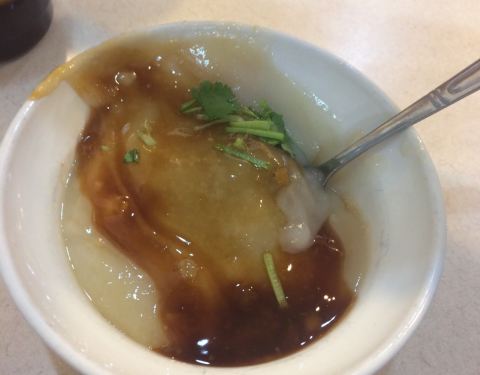台中很有名的一家店,不过台湾的肉圆子里面才是肉,外面是糯米,感觉像大陆的咸肉汤圆,不过味道很好,肉很多,皮很薄,鱼丸汤也不错。