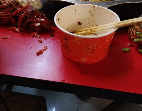 来吃油焖大虾,凉拌黄豆,味道都不错,全部吃光啦