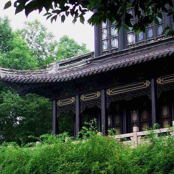 苏州园林风格的小公园,假山亭阁错落有致,环境优雅,适合散步。