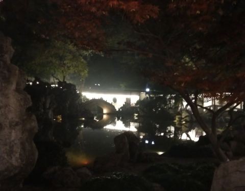 很棒的公园,小巧玲珑,亭台流水楼阁什么都有,晚上很漂亮