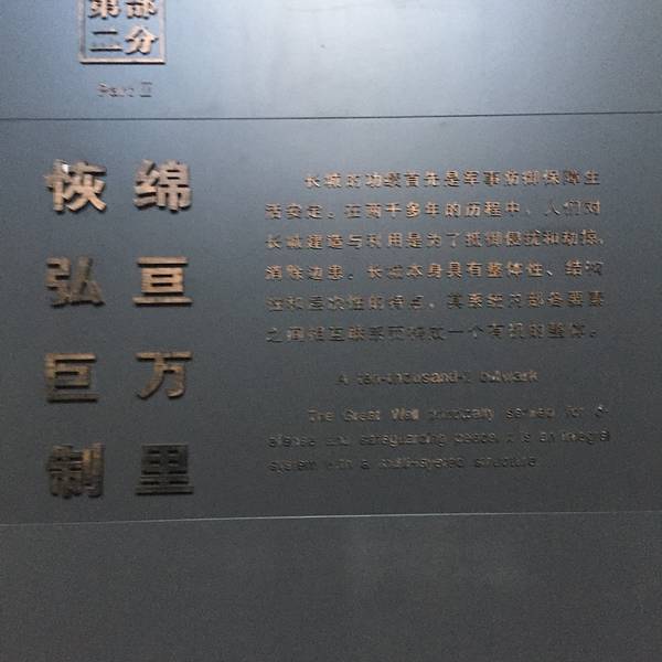 很好的博物馆,推荐。第三部分,长城内外 同是一家,介绍了长城内外的经济文化艺术交流第一部分,两千余载 续建不绝,介绍历朝历代修建长城的情况
