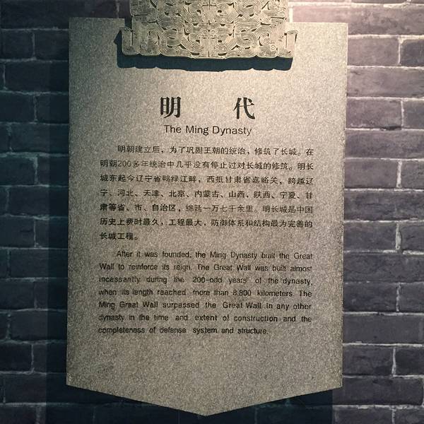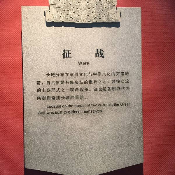 同其他的博物馆一样,周一闭馆,免费开放,不过其实这里距离登城楼的地方还不近哦,反正我走的累了不到长城非好汉,既然来了北京,还是要来长城看一下的,曾经在敦煌看了一眼啥都没看清的汉长城,已经基本上被风吹散了。 奈何本人体力太差了,爬了一半的长城就累瘫在城门口了,剩下的一半就算了吧;然后启程去...不到长城非好汉,既然来了北京,还是要来长城看一下的,曾经在敦煌看了一眼啥都没看清的汉长城,已经基本上被风吹散了。 奈何本人体力太差了,爬了一半的长城就累瘫在城门口了,剩下的一半就算了吧;然后启程去看了附近的长城博物馆。 同其他的博物馆一样,周一闭馆,免费开放,不过其实这里距离登城楼的地方还不近哦,反正我走的累了。 这里展出的是关于长城的一切:“历代长城”、“明代长城”、“建置装备”、“长城征战”、“经济文化交流”、“民族艺术宝库”、“爱我中华修我长城”七个部分,每一个都很用心的从遗迹、展品、照片等等展示给我们看,看了还是比较涨知识的,我喜欢。 按照他的路线一点点的向前走,慢慢的接近现代,貌似我走过了所有朝代一样,很有沧桑感。 展开