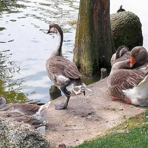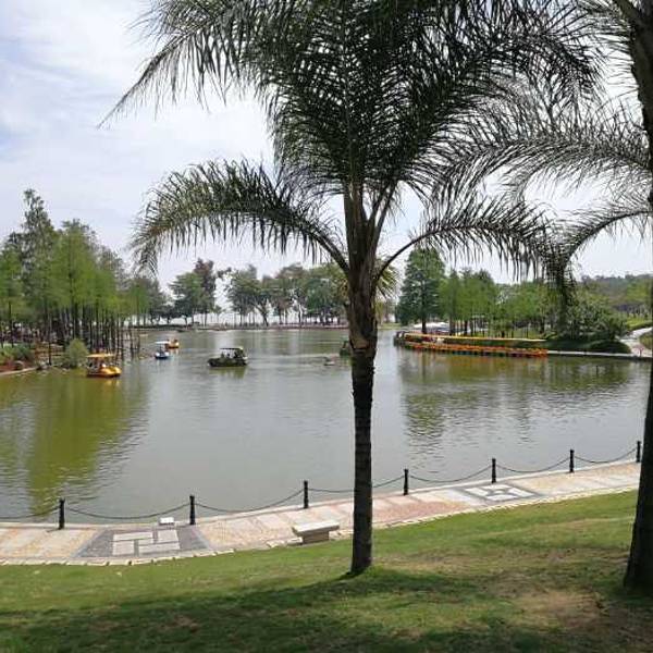 园内的人工湖里有黑天鹅,绿头鸭,灰鹅,郎德鹅(西南灰鹅),番鸭(香醇雁、麝香鸭、红嘴雁)锦鲤在觅食嬉戏。游船码头人们可以租脚踏船或是游艇和雁鸭鹅同游湖,分享快乐幸福。