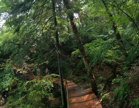 我们从下往上走的,风景一样好啊,凉爽。没想到有这么美的地方,人还很少。只是吊水壶的停车场要收费没想到有这么美的地方,人还很少。只是吊水壶的停车场要收费!我们从下往上走的,风景一样好啊,凉爽。空气质量特别高,不是很累,路边一段会有休息的地方,很干净的景区,厕所也很方便。