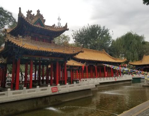 宁园在银川城区中有个鼓楼附近,鼓楼还是挺有风韵的,宁园呢其实就是一个市民常去的街心公园吧。在鼓楼那儿有家全聚德吃完朋友推荐的西北羊肉,说实话羊肉的确好吃。出门对面就是宁园了,正好吃完晚饭看地图刚好...