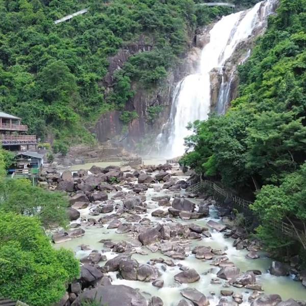 龙归寨瀑布被誉为“广东省黄果树瀑布”、“粤东第一瀑”,瀑布保留着原生态的自然美景,最为著名的当属景区内那落差高达115米的飞瀑,气势磅礴,十分壮观。