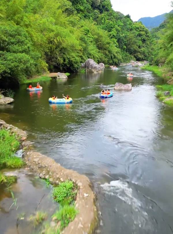 龙鲸河漂流位于广东省梅州市丰顺县大龙华镇至黄金镇清溪河段,漂程9.8公里,落差40米,历时约3-4小时。龙鲸河原名横江,河水清澈,两岸风光旖旎,峡谷幽深,植被繁茂。漂流过程中,可欣赏到独特的喀斯特地貌景观,河道蜿蜒曲折,时而平缓,时而湍急,充满刺激与乐趣。门票168元/人。