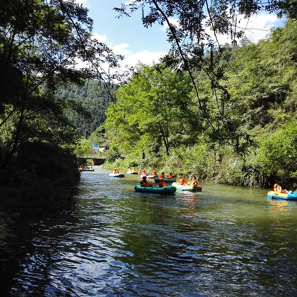 水岸互动——漂流河道两侧观光游道顺溪延伸,水上漂流,岸边嬉戏,水岸互动,野趣横生,正所谓“艇在峡中漂,人在画中游”。