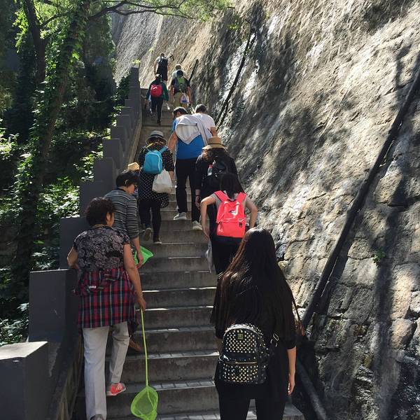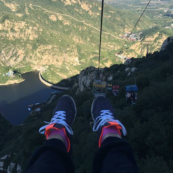 因为我们毕竟不是专业登山爱好者,爬上去之后整个腿都非常的抖,怕发生危险,所以我们是乘坐索道下来的