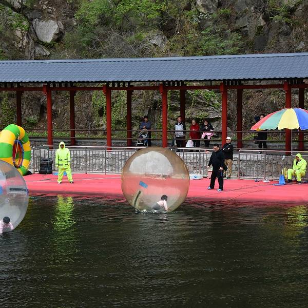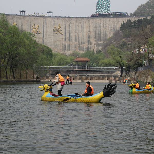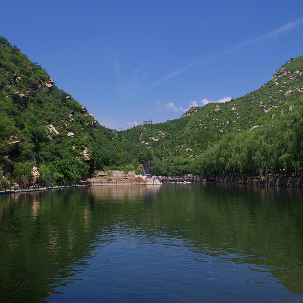 青龙峡风景区四周青山环抱绿水,空气清新,踏青游山时,沿途还能看到明代古长城,是北京市民休闲度假的好去处。除了自然风光,你也可以参加游船、碰碰船、快艇等水上游戏,图刺激的还能试试蹦极和攀岩。 青龙峡风景区内建有水库大坝,将整个景区分为两个部分:南部的高峡平湖区和东岸的极限运动场所。 在南部的湖区,景区提供了很多水上运动项目,游客可以在这里乘坐游船或快艇在水面遨游,欣赏两岸风光,也可以在浅水区选择竹伐或手划船,或者去玩玩碰碰船、水上步行球等水上游戏。夏季湖区还有游泳池对外开放。 如果你喜欢比较刺激的娱乐项目,那就去景区的东岸吧。在青龙峡风景区的东岸设有蹦极跳、攀岩、速降等极限娱乐项目。其中蹦极跳台距离水面约60米;速降全长约300米,落差高达约30米;攀岩高达25米,这些项目都非常具有挑战和刺激性。 景区内的水上运动和极限娱乐项目都需要另外付费,具体价格可以参照官网。 此外还可以在青龙峡风景区内,沿着登山步道步行而上(或者乘坐观光缆车,单程10分钟),到达玉皇台,沿途可以欣赏到明代古长城在群山峻岭中蜿蜒曲折,天气晴朗时,在山顶还能遥望怀柔城区和密云水库。 景区内有住宿和餐饮服务,但是大多数游客都是当天返回北京市区,不在景区内住宿。