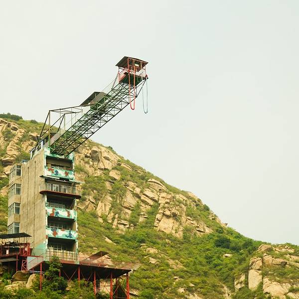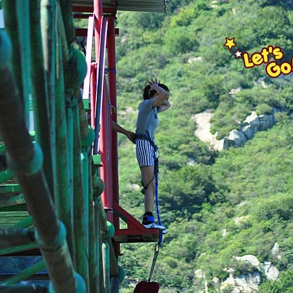 去蹦极必须进入景区,所以还要交门票钱。 站在60多米的高处,风超级大,感觉要被吹下去。国内最高
