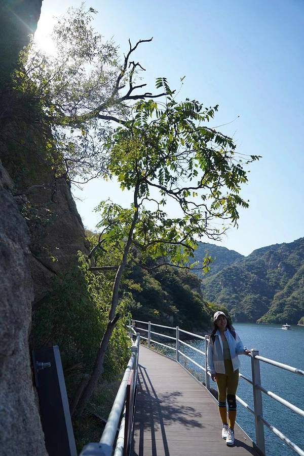 原图直出,青龙峡大美环湖路一定不要错过|||hello 各位小伙伴,我觉得北京最舒服最美的季节就要来了,这个时候不抓紧出去玩岂不是浪费了哈哈 今天推荐一下青龙峡,位于北京市怀柔区怀北镇古长城关口,于1996年正式对外开放,是集青山、绿水、古长城于一体的自然风景区,是国家AAAA级旅游景区、国家水利风景区。 很多人游玩青龙峡,就直接走到大坝上往远处眺望眺望就结束了,有些可能坐个游船,或者蹦个极,然后感慨:就这? ⚠️但是我今天要推荐的是青龙峡的环湖徒步道,任何人不去我都会伤心的好吗 因为真的太美了,尤其晴天阳光洒下来,巨巨巨美,答应我一定要去!徒步道入口是在蹦极旁边的一个小门,走进去就正式开始徒步行程了 1⃣️单程5km左右,全程土路基本没有爬升,我七十岁的老爸老妈表示毫无压力,亲子也很友好 2⃣️沿途都是湖光山色,也有路牌指引,有一段桥是在湖上搭建的,天气晴好的时候,不要太美 3⃣️缺点就是这是一条单程线,如果想回到起点,可以:1.原路返回,这样就是10km路程;2.坐快艇返回¥60/人;3.不返回另一个出门口是多哈营地,但是打车也不太好打,距离1.3km的距离有公交车,可以返回怀柔主城区 青龙峡门票🎫:¥54/人 现在早晚稍微有点凉啦,徒步的时候可以套一个外套,喜欢的小伙伴快去打卡吧!