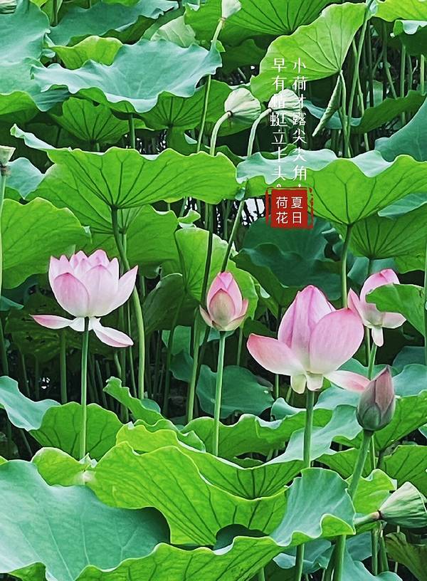 芙蓉出水,内敛含羞。无穷碧绿的花丛中,粉红色的荷花像是少女般害羞,悄悄探出脑袋打量着这个世界。