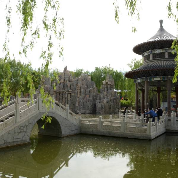 高庙,就在中卫市火车站对面,出了火车站的广场就是,站在火车站的门口就能看到一座非常高大宏伟的建筑,那就是高庙的大雄宝殿!可以从高庙的南大门进入,是一座小的园林,也可以从大雄宝殿的后面进入,直接到达大雄宝殿的门口;虽然是初春,树木还没有发芽,没有那种生机盎然的景象,但是看起来却是另外一种意境和美感,在园林里面有一个小的人工湖,湖面不大,但是比较干净,湖水泛着绿色....有假山、有凉亭很美,北国的春天来的似乎晚了很多,也许夏天来此处游玩的风景会更美丽....通过湖面上的拱桥径直来到高庙庙堂的大门,门楼看起来非常简单的设计,但你仔细观看欣赏,又会发现太多美不胜收的地方(PS:我去寺庙参观游玩,主要就是欣赏庙堂的建筑,体会古时的能工巧匠们的精心杰作,虽然我不懂建筑)。下面这张图是拱桥南面也就是庙堂对面的一座佛光阁,里面在兜售现代的一些首饰制品,不感兴趣。庙堂的主体就是大雄宝殿了,非常之高大雄伟,仔细的去品味这做建筑的各个细节,突然发现原来所有庙堂建筑在古代是不用铁钉和钢钉的,全都是那些能工巧匠们用木质的材料靠各种技巧组装到一起的,牢固程度竟然超过了现代的钢筋水泥混凝土.....地宫,大雄宝殿的一侧就是传说中的地宫,本人太胆小了,当时又是一个人前往,所以只能往而兴叹了,没敢进去,哈哈高庙我当时去的时候是不要门票的,也许是淡季,他们让免费参观了,具体不详。如果小伙伴们来中卫的沙坡头和通湖草原玩耍的话,回到市里在离开的当天就可以顺带脚的过来参观游玩一下,游玩时间建议1个小时,然后可以直接去火车站坐火车继续你的征途!