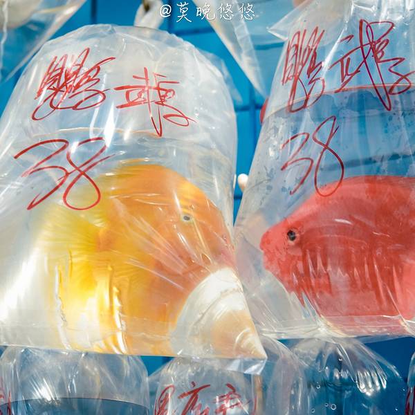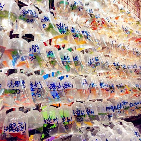 整条街大概几百的米长,但大大小小卖鱼的档口非常多,不管买不买,过来走走也是不错的香港的金鱼街,顾名思义,就是一条都是在卖金鱼的街道。最奇特的就是众多不同的金鱼的品种分别被装在透明的袋子里,或一条,或几条,然后一袋袋挂起来售卖,上面也有标明了价格。走过路过难免不会被这些漂亮的小...香港的金鱼街,顾名思义,就是一条都是在卖金鱼的街道。最奇特的就是众多不同的金鱼的品种分别被装在透明的袋子里,或一条,或几条,然后一袋袋挂起来售卖,上面也有标明了价格。走过路过难免不会被这些漂亮的小鱼儿被吸引住了,无论有心购买还是只是看看的,都围着这些金鱼转。这两条袋子上是写着“鹦鹉”的品种,一黄一红隔着袋子亲吻,像恋人一样,卷卷看到之后立马说,快看,连鱼也在虐狗。哈哈哈整条街大概几百的米长,但大大小小卖鱼的档口非常多,不管买不买,过来走走也是不错的。 展开