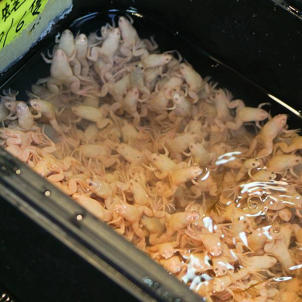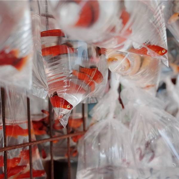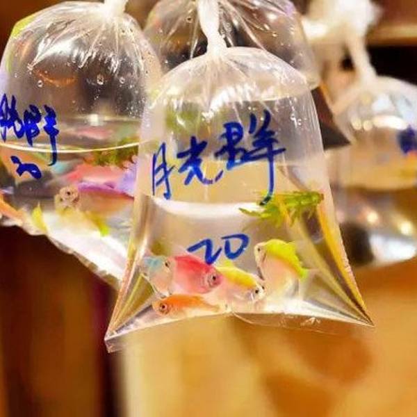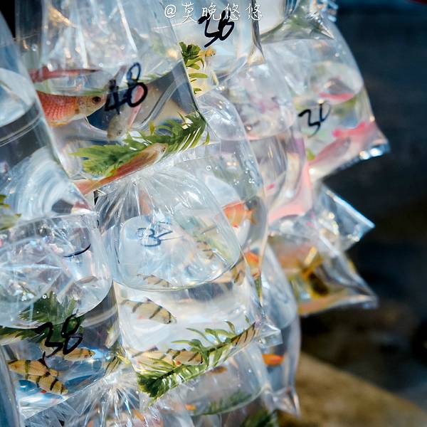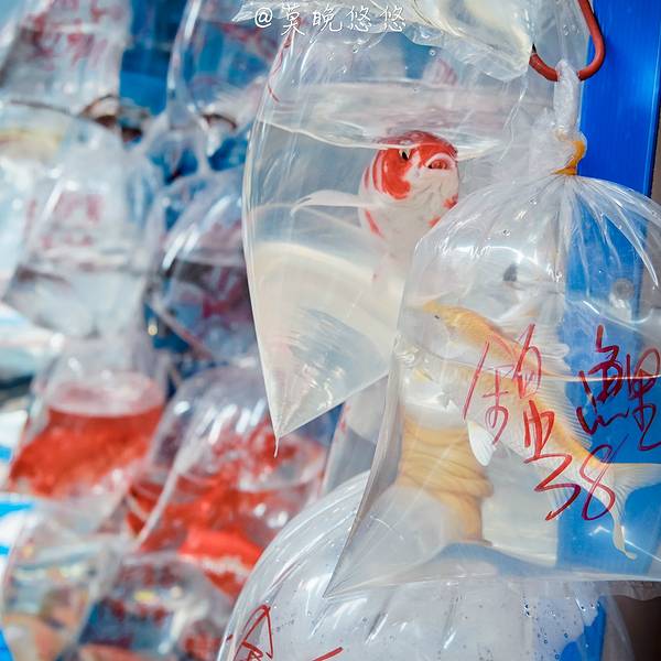 "金鱼街”真的就是一条都是卖金鱼的店铺,每路过每一家店铺,没想到都挺多人的。这些五颜六色,不同品种的小小鱼儿被装进鱼袋里,就这么挂了出来。你看你看,这两条小鱼还亲吻起来啦!特别有趣!除了常规的鱼儿,很多店里还有小乌龟,这些都不是重点,重点是还有这看起来些许令我毛骨悚然的金蛙。它有着淡粉色的外皮,不知道该说它可爱呢还是该吐槽它呢! 展开