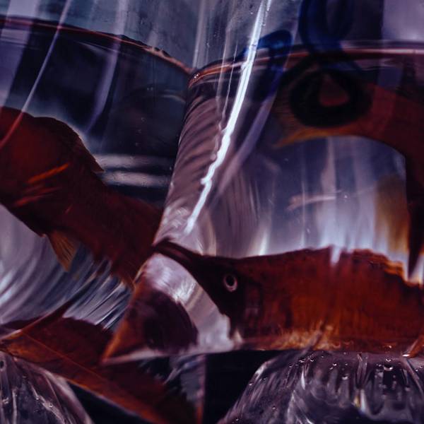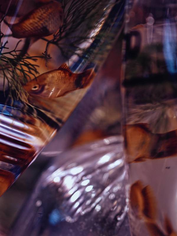 怎么叫加上了美妙的滤镜?!👆这张是鱼还在大水缸的效果👆这些是一堆塑料袋一起被挂在墙上的效果👆这两张是我买的一袋鱼,拿着到处走,在灯光好的地方抓拍到的效果