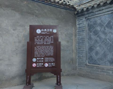 在大佛寺内。 大佛殿东北角,是山西会馆。清雍正八年(1730年),几位山西商人筹资,将始建于雍正二年(1724年)的关帝庙改建为山西会馆,使背井离乡的山西客商有了一个共同聚会、拜神、听戏、吐槽、吹牛的场所,听着家乡戏,吃着家乡菜,说着家乡话,生活中互相照顾,生意场互相扶持。 沿中轴线主要建筑有山门、戏台、观戏楼、牌坊、钟鼓楼、关帝庙。