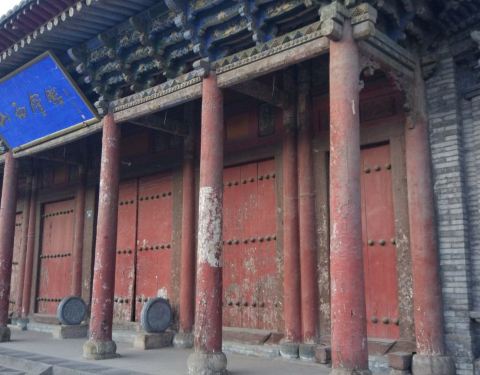 大佛殿东北角,是山西会馆。 沿中轴线主要建筑有山门、戏台、观戏楼、牌坊、钟鼓楼、关帝庙
