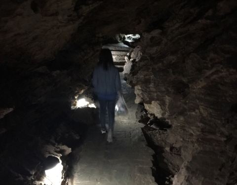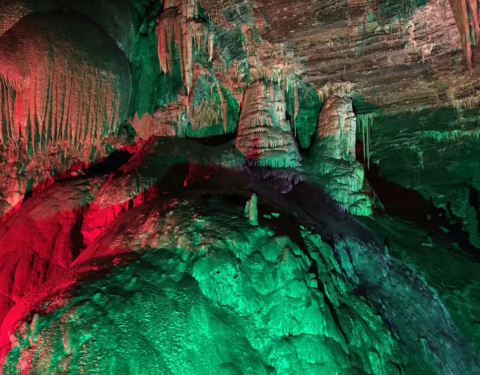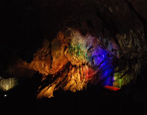 石花洞的钟乳石是壮观的,而银狐洞的钟乳石虽不比石花洞,但是就凭他的地下暗河就值得一去。还有一个黑暗悠长的隧道,及最后要爬的长长的楼梯。