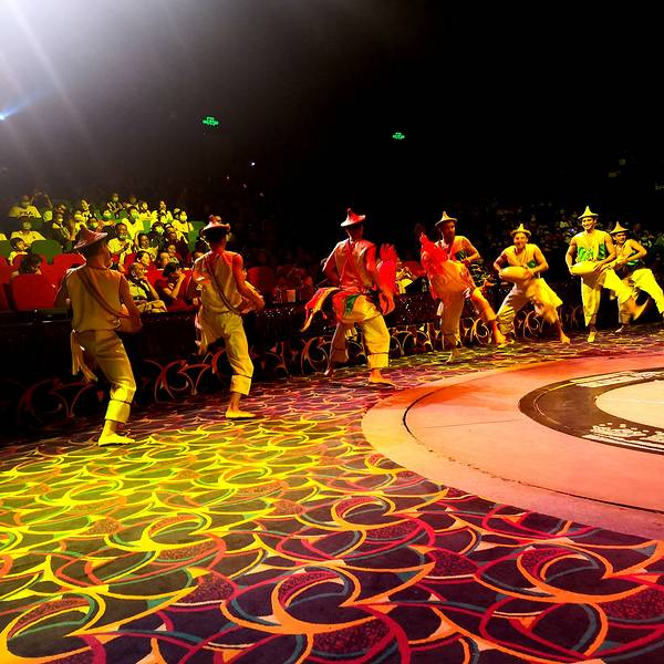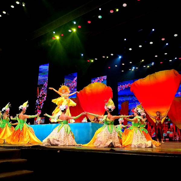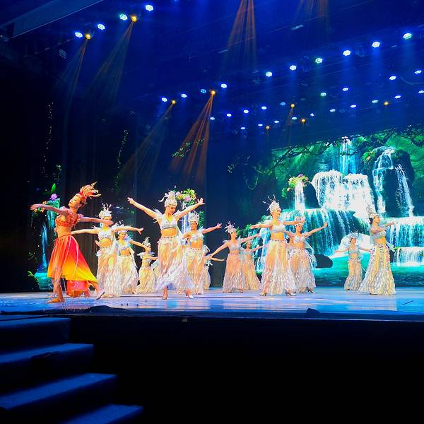 渔人码头充满了西方嘉年华氛围。其分为内湖、酒吧广场、美食街、商店四个大型区域,是海泉湾重要的主题活动中心、艺术展示中心和休闲文化广场。可乘船赏景、闲庭信步,享受美食和购物之乐。夜幕降临,还可于观景台上尽情领略浓郁的异国风情的夜景。2.梦幻剧场