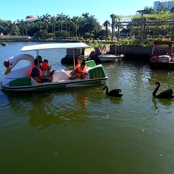 我们第一站到了依内湖而建的渔人码头,先在那里的面馆吃了饭,就到对面湖里划船,湖上有悠闲的天鹅和鸭子游来游去,时而和游人互动嬉戏。