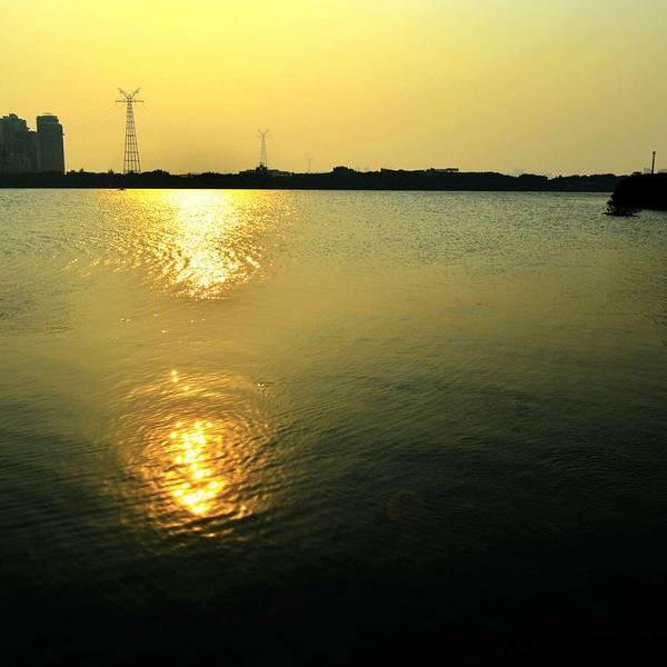 夕阳西下,站在白鹭洲观看夕阳与白鹭河的相互映衬,似乎人已经入定了!