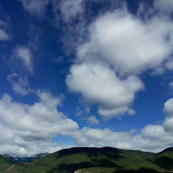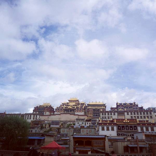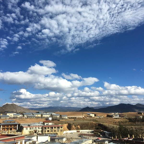 高海拔让我们离天空更近,仿佛手可摘星辰,不,摘“棉花”。感觉坐在石阶上看云卷云...中午在虎跳峡又热又晒,穿着短袖尤嫌不足。可是随着海拔越来越高,到了葛丹松赞林寺的时候,大家都已经自觉穿上了羽绒服。。。