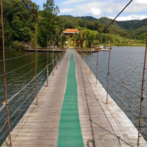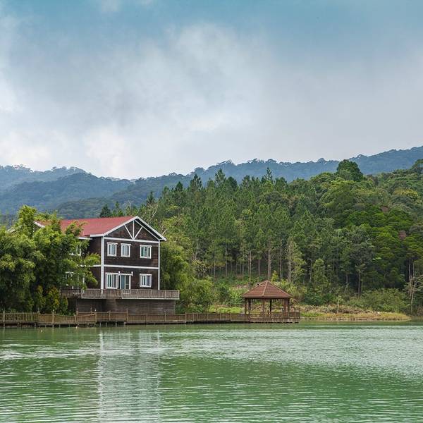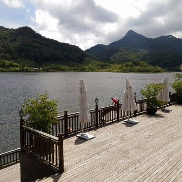 鸣凤谷热带雨林里古木林立,树种繁多,很多树的边上都会悬挂介绍树种的小牌子,其中不乏名贵木材,也有很多是尖峰岭特有树种。有上千岁的巨树高达三四十米,这里是一片纯天然的热带雨林。可以增长雨林知识,还可以呼吸热带雨林中清新的空气,洗心洗肺。一路都有木栈道,沿着木栈道走个环线,出口就在进口旁边。尖峰岭天池桃园酒店(准五星酒店)整个酒店修建在一个湖心小岛上,四面环湖。欧式木屋建筑风格。可眺望山色湖景。出入酒店需要走过一座吊桥。酒店沿湖而建,由很多栋不同结构的木屋别墅组成。观湖观山的绝美观景酒店,当然价格也不菲。沿着蜿蜒的绕湖木栈道或骑行或徒步,可观山色湖景,美不胜收。天池是众山峰中的盆地,多数景点和度假村分布其中。去的时候遇上雨天,如果遇上晴天,可以看到尖峰岭尖尖的山峰矗立在湖边,倒影在湖中,肯定更美。 展开