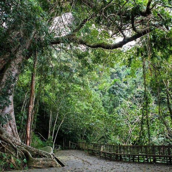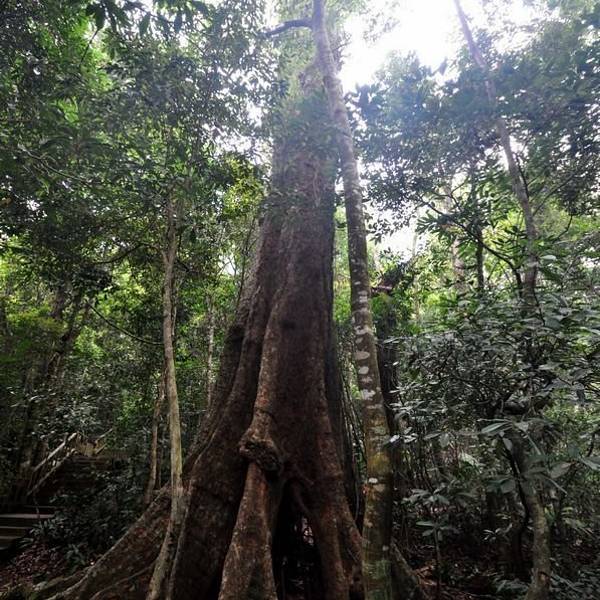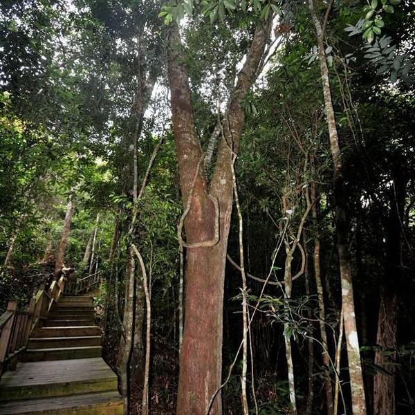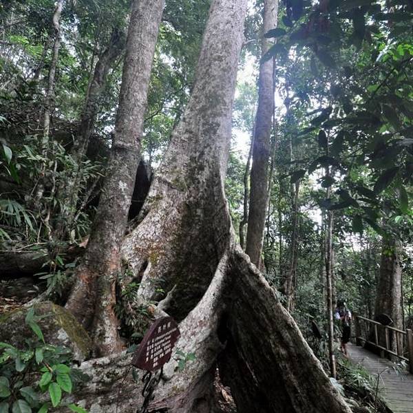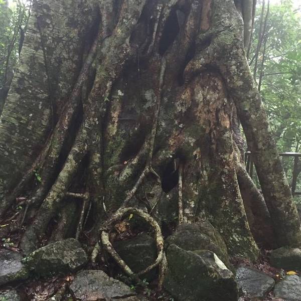 实用 5公里 ,有千年古树、空中花园、大板根、绞杀等热带雨林独特景观,让我们来惊叹大自然的神奇吧早上九点从三亚自驾出发,中午到达尖峰岭国家森林公园,公园内各景点相距很远,建议自驾进入或骑行,景区没有开通交通工具,天池和主峰是两个方向,车程大概需要半个小时左右,我们选择了去天池和鸣凤谷。一路山...早上九点从三亚自驾出发,中午到达尖峰岭国家森林公园,公园内各景点相距很远,建议自驾进入或骑行,景区没有开通交通工具,天池和主峰是两个方向,车程大概需要半个小时左右,我们选择了去天池和鸣凤谷。一路山路蜿蜒曲折,由于处于雨季,有一点山体滑坡现象,但不影响通行。从半山腰上远远望去,远处白色的是城区,被大山环绕其中,山里空气十分清新。氤氲中的山,美的像画一般,仿佛这山里住了老神仙,云雾随着风变幻莫测,郁郁葱葱的山林,向上而生,自然的力量无穷无尽。车一路在云雾里穿梭,山顶能见度不足十米,走着走着就消失在这云雾里,断断续续的下着雨,一会小雨,一会大雨。鸣凤谷距离天池2公里,全程有栈道长约2.5公里 ,有千年古树、空中花园、大板根、绞杀等热带雨林独特景观,让我们来惊叹大自然的神奇吧。鸣凤谷入口偶遇一只悠闲的五脚猪,它们不是真的有五只脚,而是因为它们像野猪一样脚短小,嘴巴尖长,喜欢在野外到处拱土觅食,走起路来嘴巴贴着地,从后面看就像五只脚,所以当地人就叫它们“五脚猪”。古树上生长出的菌类像木耳一样,可爱极了。桫椤又名树蕨,是古老的蕨类植物,茎直立,中空,似笔筒,叶螺旋状排列于茎顶端。是已经发现唯一的木本蕨类植物,极其珍贵,堪称国宝,被众多国家列为一级保护的濒危植物,有“活化石”之称。无处不在的蕨类植物,屋顶,树上,石头上,肆意生长。巨大的滴水观音,有一人多高,叶子超大,被虫蛀的洞,很有趣。从鸣凤谷入口一路上与我们同行的伙伴,不知道它的主人是谁,不知道它的名字,索性就叫它哮天,一路跟随我们,每次休息后他都会守到最后一个人起身才跟着一同前行。长满苔藓的巨石。雨林奇观之大板根,树木的根系裸露在外,形成板状,板根是一种热带木本植物所特有的板状不定根,可看成是一种气生根,也是热带气候下的一种特殊生态现象。土壤中的水分长期处于饱和或近饱和状态,不利于植物根系的呼吸,再加上热带雨林的乔木长得非常高大,需要发达的根系支持树干的力量。而裸露在外的向四周发散生长的板根,就能满足热带雨林树木生长的这种需求。绞杀现象,绞杀植物主要是榕树,当榕树上的气生根紧贴在寄主树干的四周向下生长时,网状的缠绕根系将其寄主死死抱住,形成绞杀,最后将寄主树绞杀至死,寄主树被绞杀死亡后分解产生大量养分,供榕树生长。雨林中的兰花、蕨类等植物为了争夺阳光水份,附生或者寄生在树木上,形成树上长树,树上长花的植物共生现象,这样就形成了异彩纷呈的空中花园,往往一棵古树上长有几十上百种植物。说来这个天池,并没有想象中的美,湖中的酒店算是整个天池的亮点。天池桃花源酒店,由这座桥通往酒店的客房,非住店客人,不许进入。天池中的游船,看起来特别有古装仙侠片的感觉,仿佛有世外高人吹着笛子,站在船头,望向远处高山云雾,叹息岁月匆匆,眼角含泪的画面感。湖光山色,远处的那颗白色树干的树,特别的美。很遗憾时间不够,没能去爬主峰,热带雨林的神奇深深的吸引了我,当阳光从叶隙中透出点点斑驳时,爱上这里,当我翻看照片,敲下这段文字时,心已飞向热带雨林。 展开