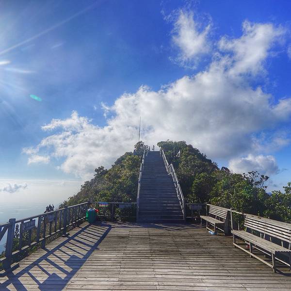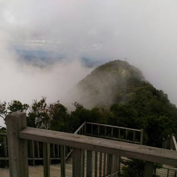 实用 居然大晴天的,对面的山岭也会在云雾中若隐若现,真是很奇妙的景色。终于登顶了,风光确实无限美好去尖峰岭的主峰,还要回到公园大门,然后可以一直开到主峰的脚下,快到时可以看到主峰的全貌。其实已经开车来到半山腰的位置了,而主峰 还有这么高,没有索道,一会儿要爬到山顶,想想就有点两腿发软。