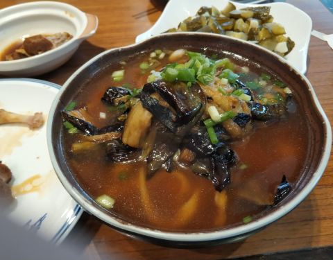 和永定路上的好嫂子不太一样,这家是家常菜,所以相同的菜品普遍高出两元。实际上是很想吃酸辣瓜条才到饭店来的,如果黄瓜不失水太多会更爽脆,稍有点辣,真实夏季美味。雪菜面清淡可口,会有些肉沫调味,味道比较符合个人的口味。午饭的时间人很多,小店干净整洁,上菜速度很快,七分钟左右就等到了。
