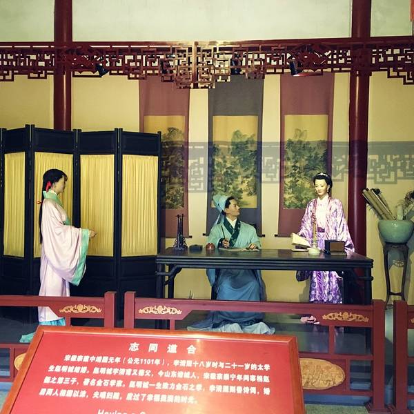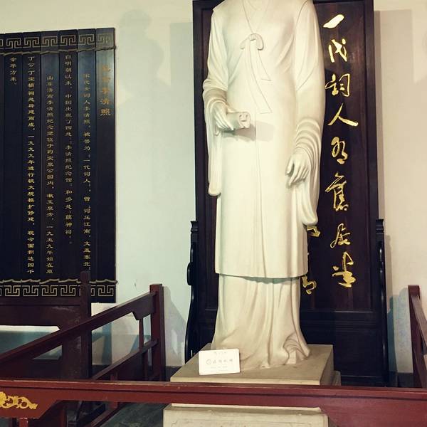 金骆驼 是个特别值得游览参观的地方!当然了,还是建议熟读她的词,因为这样更有代入感李清照纪念馆是在趵突泉公园里的一个景点,从趵突泉公园南门进去就能看到一个路标,顺着路标过去就能看到纪念馆的正门。李清照纪念馆在漱玉泉的正对面,东边是马跑泉,可说是整个趵突泉公园风景最为优美的地方。...李清照纪念馆是在趵突泉公园里的一个景点,从趵突泉公园南门进去就能看到一个路标,顺着路标过去就能看到纪念馆的正门。李清照纪念馆在漱玉泉的正对面,东边是马跑泉,可说是整个趵突泉公园风景最为优美的地方。李清照纪念堂的题词还是郭沫若的手笔呢。纪念馆是采用宋代建筑风格建成的一个很大的院落,分好几个区。从正门进去就是个院子,里面载种李清照诗词里出现的一些植物,像是芭蕉啊海棠啊青竹啊这些,植物多是南方的,在这北方的院子里居然也能长得叶繁叶茂,看起来一派热闹的景象。走进院落就能感受到李清照的家室想必是个大户人家,除了院落景致十分雅致美观,屋子也很多。为了方便参观,纪念馆里做了许多蜡像场景,栩栩如生,从正门进一路走进来就能看到李清照一生的缩影,从李清照幼年时期到长大成人,结婚,以及与丈夫举案齐眉的生活都一一展现在我们游客的面前。在纪念馆还能看到当时李清照用的家居摆设,展厅的墙上皆为当代书画家所作的赞咏李清照诗词的作品。我们参观的时候雨已经停了,雨后的空气清新充满了大自然的气息,走在这院落中自是更能感受到著名女词人的细腻和优雅,真的太值了!是个特别值得游览参观的地方!当然了,还是建议熟读她的词,因为这样更有代入感。 展开