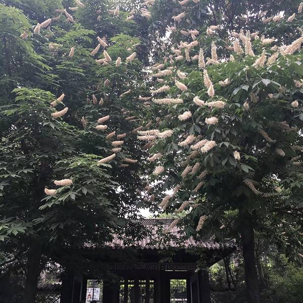 下图的亭子有写趵突泉的实时水位,基本上是最低值了当时。趵突泉景区附近,还有不少漂亮的古树。济南不仅是趵突泉内,很多地方都是种满了柳树,而柳树飘落着很多棉花类的絮状物,听说是母柳树的种子。。。趵突泉水形成的图解释。走着走着,我们就来到了李清照纪念堂。