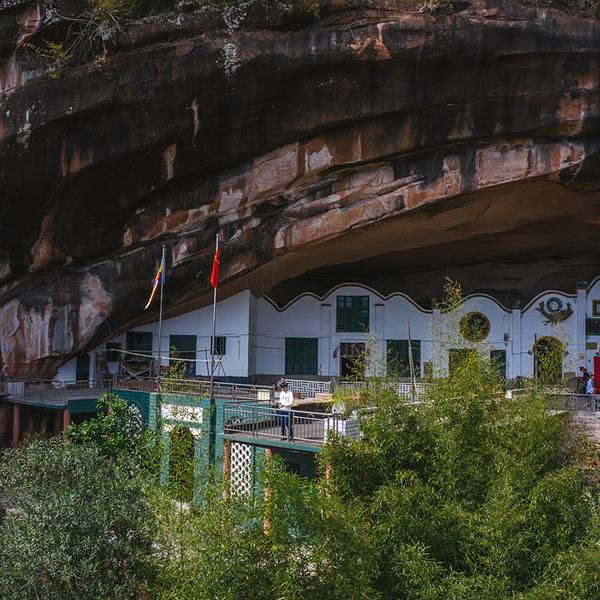 今天我就带你走进一个神奇的山洞四寺,它就是位于郴州市永兴县的龙华山公园内。该坦山势雄峻,风景如画我们就知道祖国的西北有一个莫高窟,中国四大水库也是扬名海内外,但是你知道吗?有些地方的寺庙它就是建造在天然的洞穴里面的。今天我就带你走进一个神奇的山洞四寺,它就是位于郴州市永兴县的龙华山公园内。国...我们就知道祖国的西北有一个莫高窟,中国四大水库也是扬名海内外,但是你知道吗?有些地方的寺庙它就是建造在天然的洞穴里面的。今天我就带你走进一个神奇的山洞四寺,它就是位于郴州市永兴县的龙华山公园内。国林寺位于马路边上很容易就看得到这巨大的洞穴非常神奇,但是里面的寺庙简直盖得像布达拉宫一样,高高低低,错落有致,而且里面的风格是完全没有见过的,白色的墙壁,还有一些绿色作为装饰圆圆的屋顶,这些都是从来没有见过的中国建筑风格。黄坦是什么?