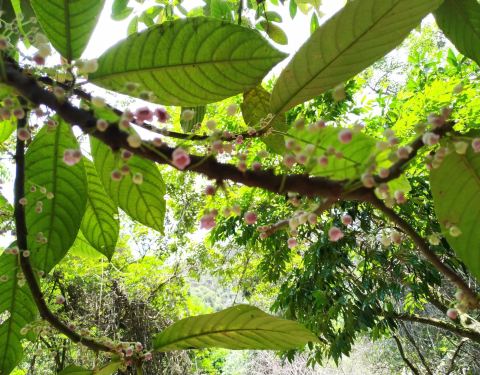 山民的生活痕迹给山林添了烟火气。靠近东门的山坳里,几间白墙黑瓦的老屋藏在果树后,院前的竹匾晒着野茶,女主人正用竹筛簸箕分离茶梗,见我经过,笑着递来一杯刚泡的茶汤,“喝口山泉水泡的茶,解解乏”。屋后的小径旁,野生的杨梅树挂满青果,主人说:“等熟了你们再来,随便摘,山里的东西,大家分着吃才香。”