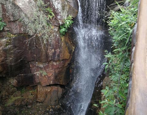 龙门瀑布是自然与人力的碰撞点。水流从十余米高的崖壁跌落,砸在潭中激起白色水雾,阳光折射下常有彩虹悬在半空。潭边的岩石被人的脚印磨得光滑,有人在石壁上凿出简易台阶,方便游客靠近戏水。