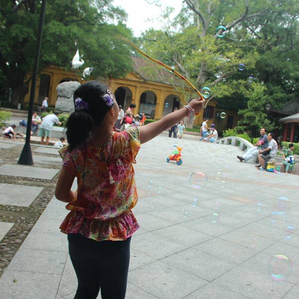 今天醒得稍稍早点,因为要回程了。原计划昨天爬完姑婆山先去骑楼城大吃一顿,哪知道我们慢慢地玩花了一整天时间。早起在酒店吃完早餐就整装出发。 先去河滨公园,因为看到攻略说这里可以看到梧州全景。 河滨公园是从一个不显眼的小路往山上走,走到山顶建立的一个公园。当时很难理解导航的意思,走过了回头想一想才试着走一走。走到山脚下还不敢确信,问路人,说现在都不叫河滨公园,而是珠山。原来如此。看来网上对梧州的了解真是很陈旧啊。 公园可以开车到基本山顶了,停车场车不多,还有人打羽毛球。到了山顶锣鼓歌舞好不热闹,这不就是本地人遛弯的地方么。拾级而上。去博物馆里了解了梧州的前世今生,一个古老的水上贸易重要城市,有点像湛江。还我河山碑,革命先烈经过了那么多可歌可泣的抗争,终于换来了今天的安宁。看着老老少少在历史的旁边各得其乐,真是让人感慨。公园有一楼阁,登上去真能看到梧州全景。孩子就是孩子。最后最大的乐趣其实是和小盆友吹泡泡。好多好多泡泡。五彩缤纷的世界。公园一游后,下山去下一个地方。