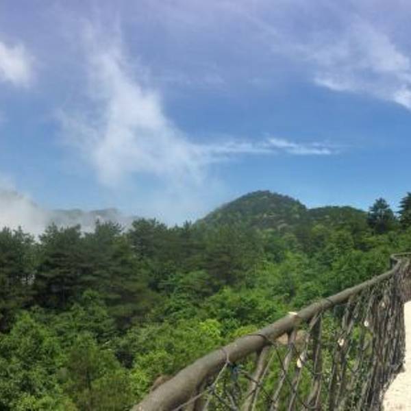 没有赶上拍雾,里面没有过多的商业套路。游览时候巧遇:殿前哭拜、唱经跳神的香客 ; 魂儿都吓飞了,更需拢神敬畏。较为有趣味的是登天梯,拉着锁链爬台阶,还有玻璃观景台,可以拍出天空之城的效果。山顶矿泉水3元,烤肠4元,景区良心价。