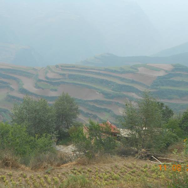 从路上俯视金沟,和煦的太阳,清凉的和风中,依稀听得村里人说笑的声音从路上俯视金沟,和煦的太阳,清凉的和风中,依稀听得村里人说笑的声音。大小金沟在山下,可以看到水库的是小金沟