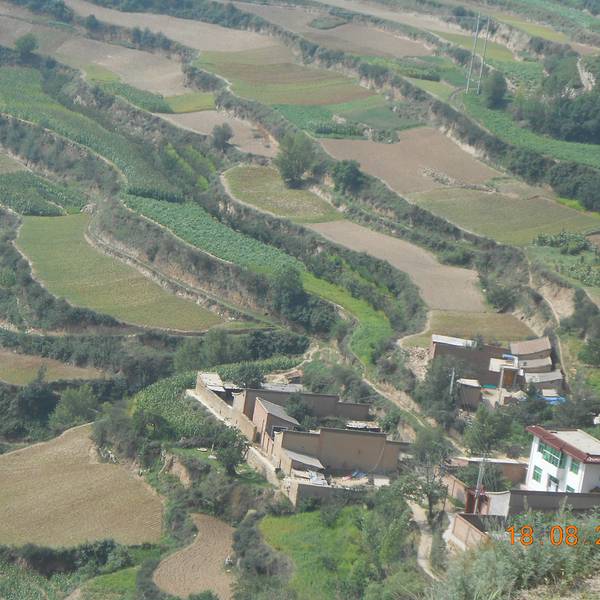 从路上俯视金沟,和煦的太阳,清凉的和风中,依稀听得村里人说笑的声音